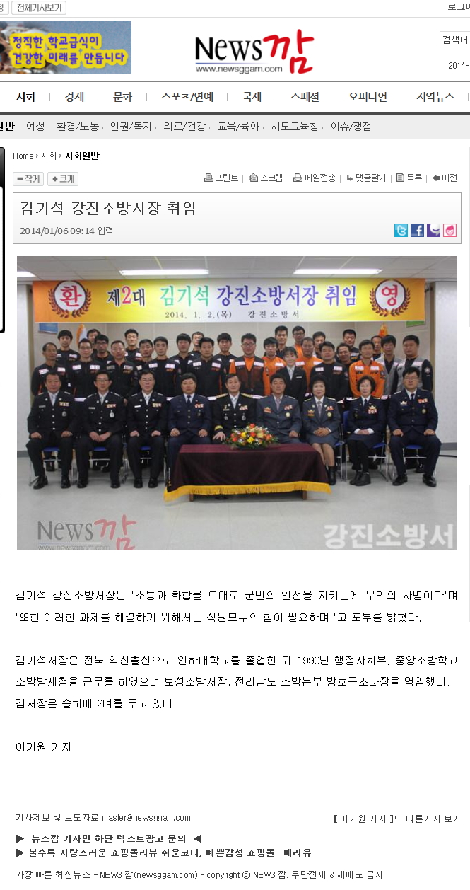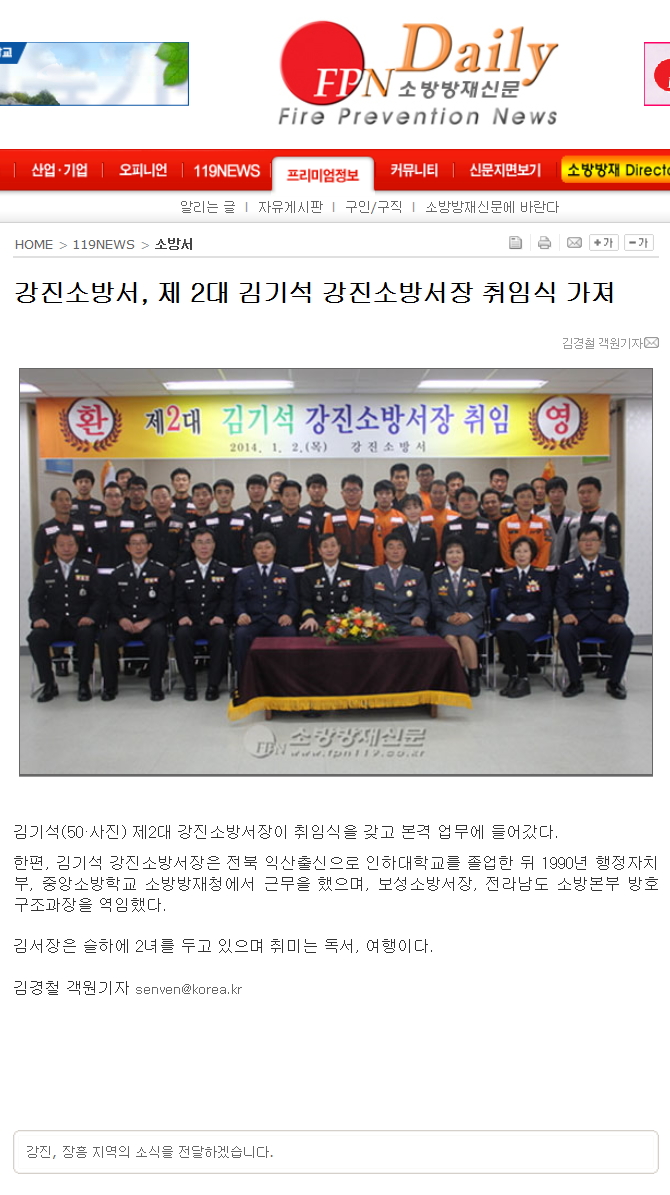 강진소방서, 제 2대 김기석 강진소방서장 취임식 가져(소방방재신문).jpg (