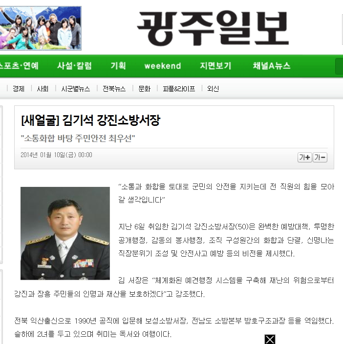 사전 화재예방 노령층 안심콜 서비스 주력 강진소방서장 김기석(강진신문)