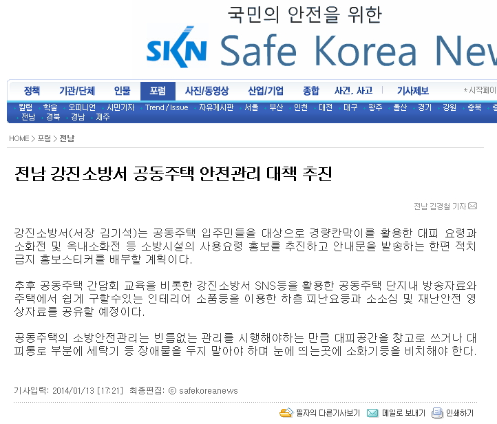 전남 강진소방서 공동주택 안전관리 대책 추진(세이프코리아뉴스)