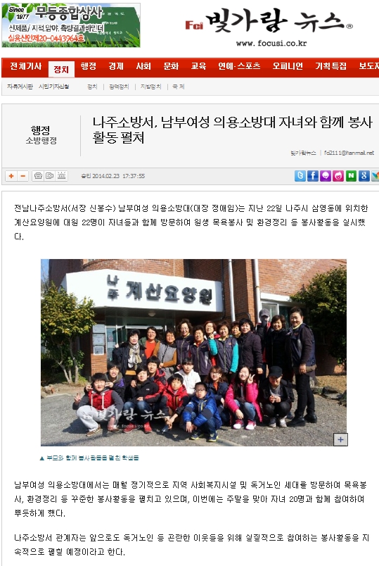 2014-02-23 빛가람뉴스(나주소방서, 남부여성의용소방대 자녀와 함께 봉사활동 펼쳐).jpg (