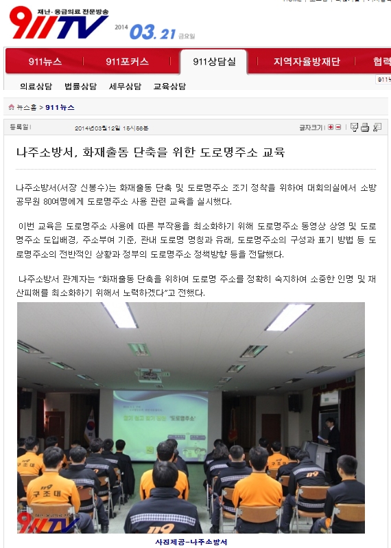 2014-03-12 911tv(나주소방서, 화재출동 단축을 위한 도로명 주소 교육).jpg (