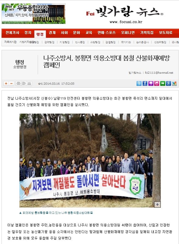 2014-03-16 빛가람뉴스(나주소방서, 봉황면 의용소방대 봄철 산불화재예방 캠페인).jpg (
