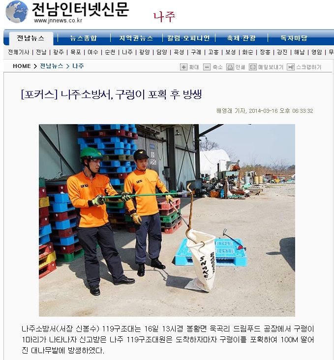 2014-03-16 전남인터넷신문(나주소방서, 구렁이 포획 후 방생).jpg (