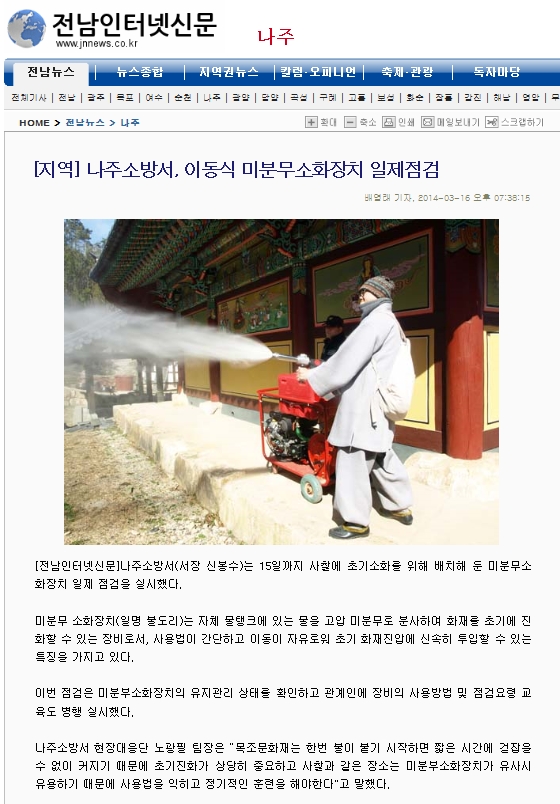 2014-03-16 전남인터넷신문(나주소방서, 이동식 미분무소화장치 일제점검).jpg (