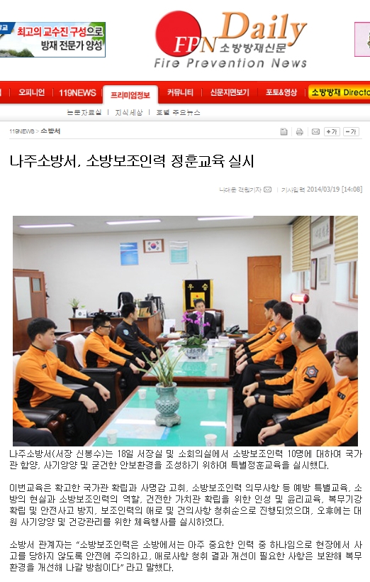 2014-03-19 소방방재신문(나주소방서, 소방보조인력 정훈교육 실시).jpg (