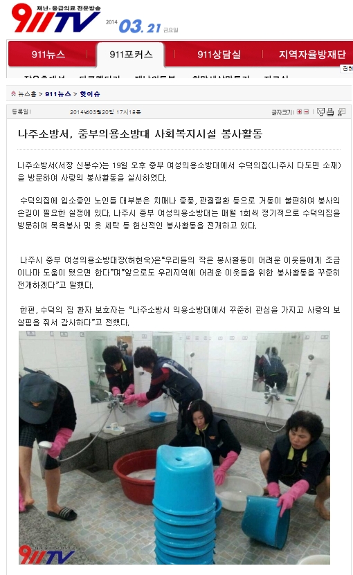 2014-03-20 911tv(나주소방서, 중부의용소방대 사회복지시설 봉사활동).jpg (
