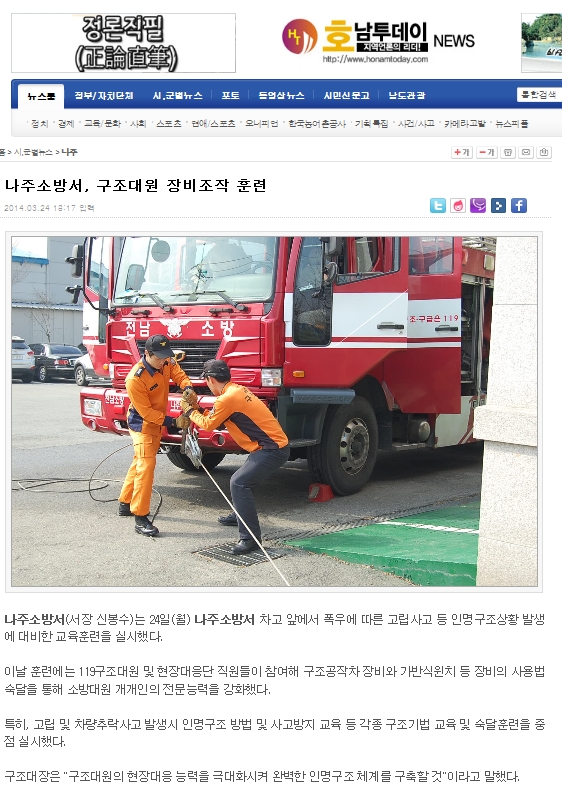 2014-03-24 호남투데이(나주소방서, 구조대원 장비 조작 훈련).jpg (