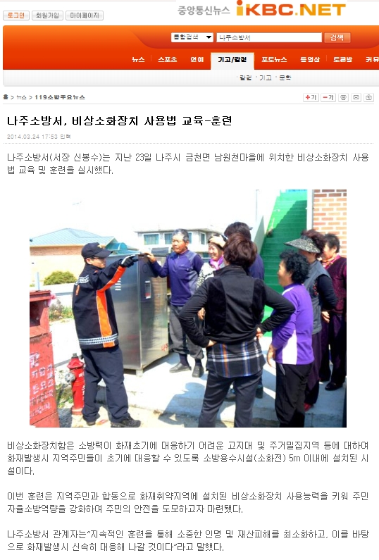2014-03-24 중앙통신뉴스(나주소방서, 비상소화장치 사용법 교육-훈련).jpg (