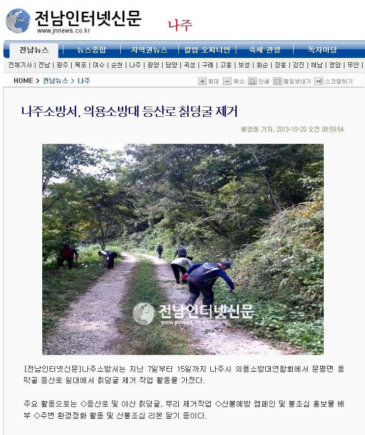 [나주소방서] 의용소방대 등산로 칡덩굴 제거