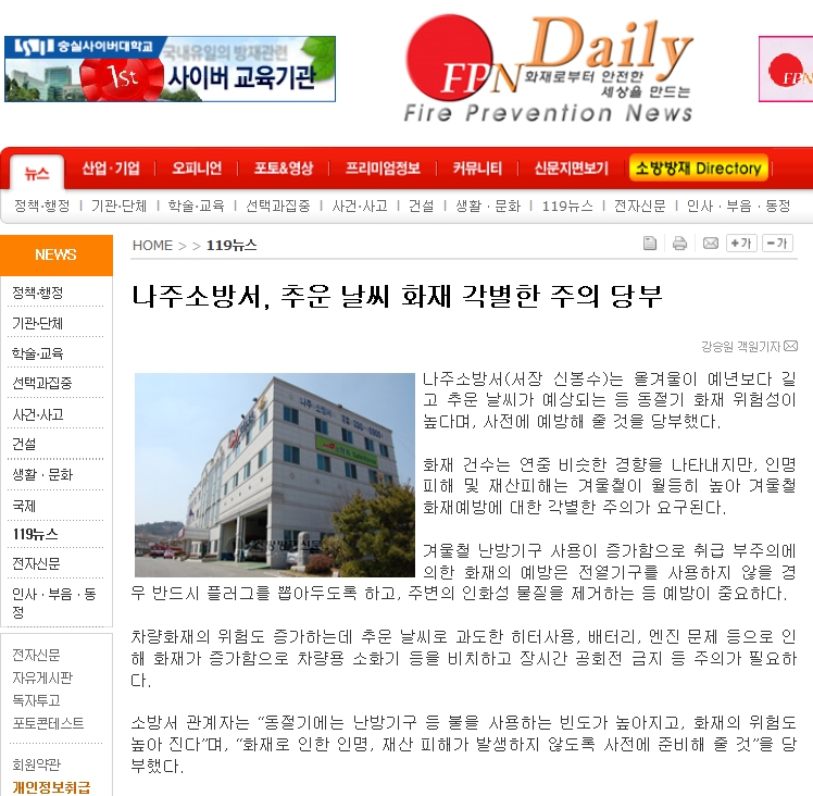 [나주소방서] 추운 날씨 화재 각별한 주의 당부