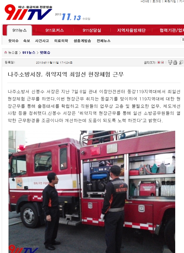 나주소방서장, 취약지역 최일선 현장체험 근무