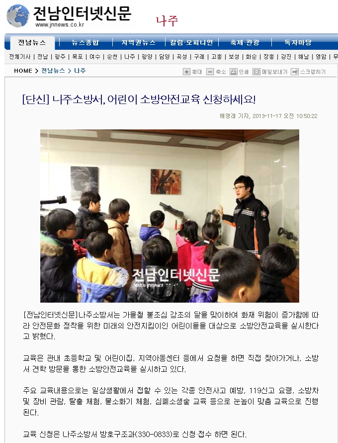 나주소방서, 어린이 소방안전교육 신청하세요!