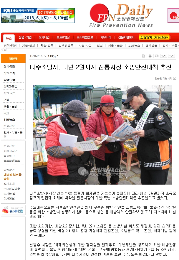 나주소방서, 내년 2월까지 전통시장 소방안전대책 추진