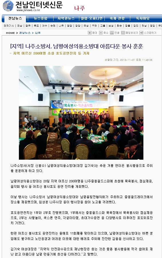 나주소방서, 남평여성의용소방대 아름다운 봉사 훈훈