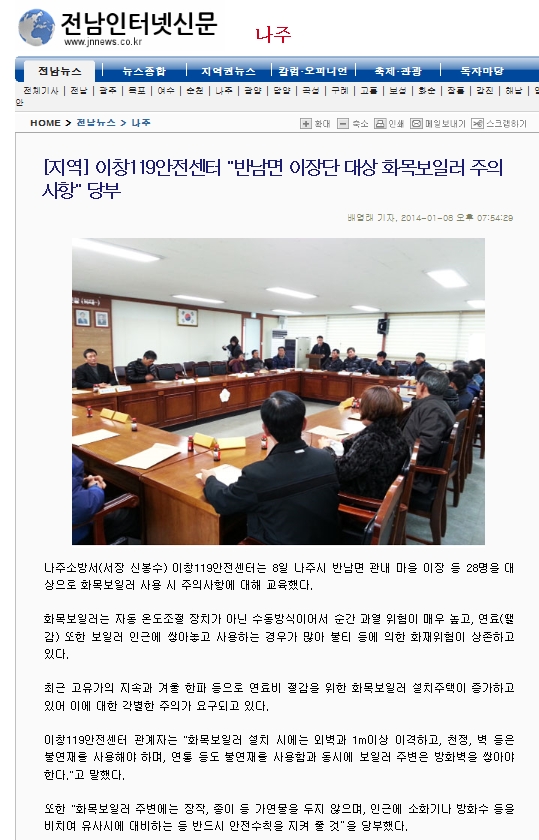나주소방서, 화목보일러 취급 주의 당부