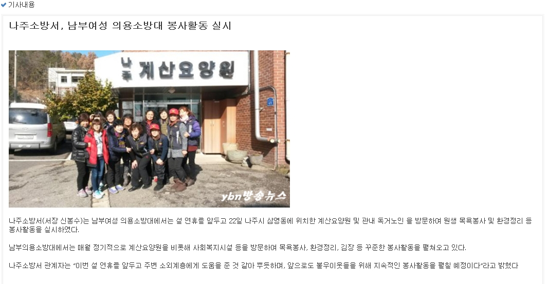 나주소방서, 남부여성 의용소방대 봉사활동 실시