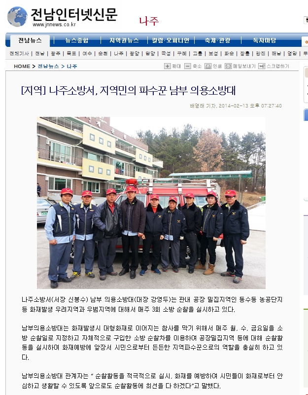 2014-02-13 전남인터넷신문(나주소방서, 지역민의 파수꾼 남부 의용소방대).jpg (