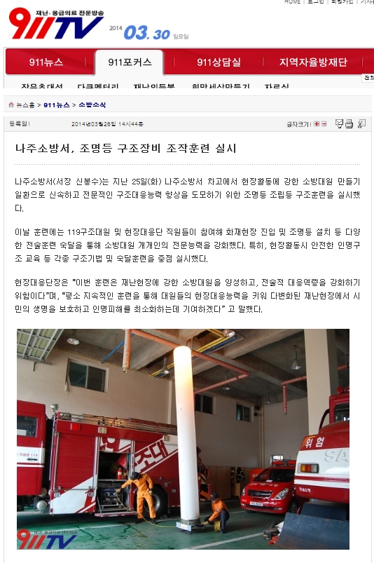 2014-03-26 911tv(나주소방서, 조명등 구조장비 조작훈련 실시).jpg (