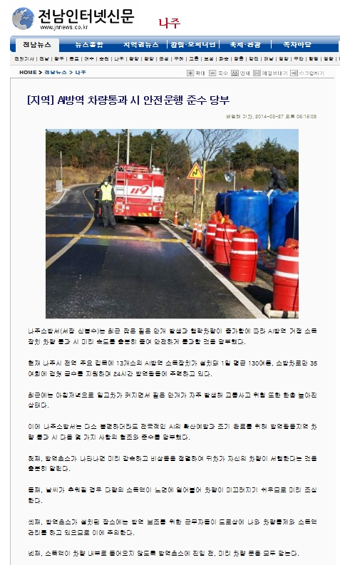 2014-03-27 전남인터넷신문(나주소방서, ai방역 차량통과 시 안전운행 준수 당부).jpg (