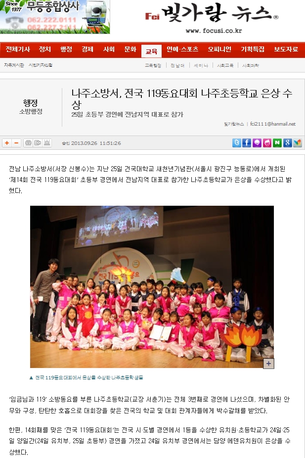 [나주소방서] 전국 119동요대회 나주초등학교 은상 수상