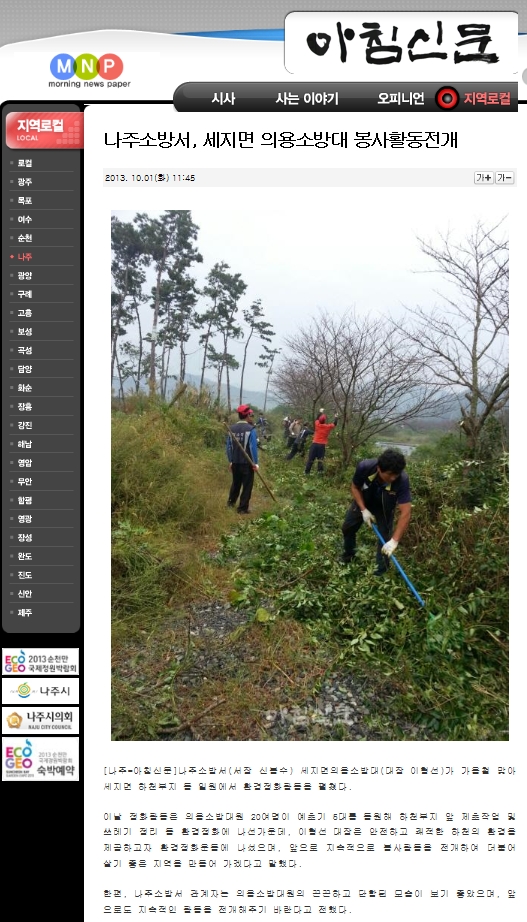 [나주소방서] 세지면 의용소방대 봉사활동 전개