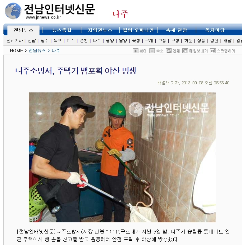[나주소방서] 주택가 뱀포획 야산 방생